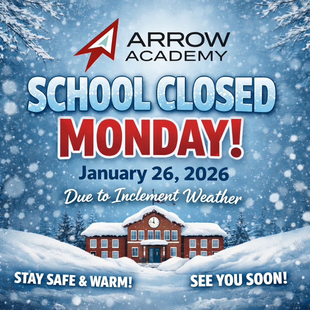 For the safety of our scholars and staff, ALL Arrow Academy campuses will be closed on Monday, January 26, 2026 due to pending inclement weather predictions.